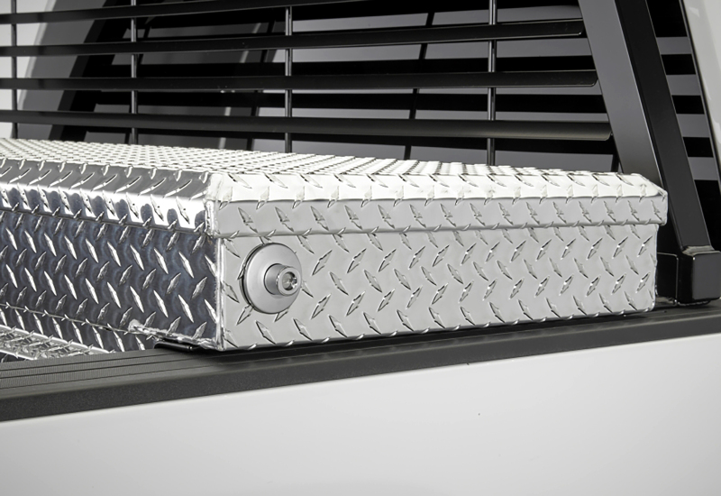 Our new LOW PROFILE DRILL Hardware Kit is available for select late model fullsize trucks. These require you to drill two holes through the top of the bed rail for installation. If you must have the Toolbox sitting at bed rail height this is the option. Four carriage head bolts secure the assembly allowing you to place the Toolbox at a low profile using existing clamps that came with the Toolbox. Drill if you must. Not compatible with TONNEAU COVER ADAPTER Brackets.