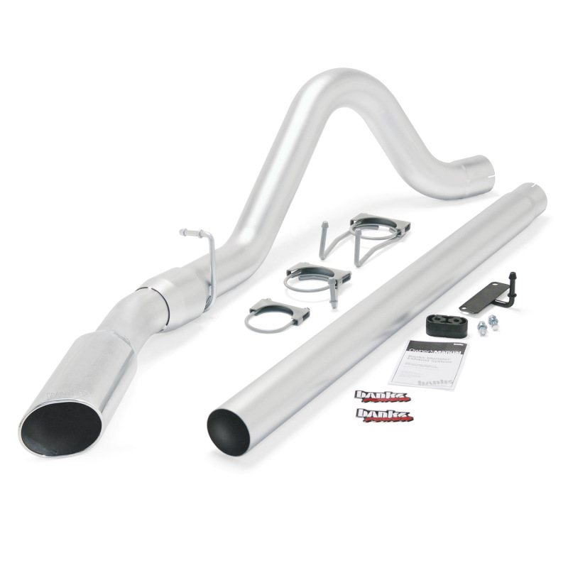 4 - inch constant - diameter DPF - back. Improves flow up to 50 Percent. Cuts back pressure up to 40 Percent. Safely clears spare tire. Includes Huge Polished Chrome or Cerakote Black Patented SideKick tip. The Banks Monster Exhaust is engineered using computational fluid dynamics (CFD) software then tested on both dyno and on - road. Reducing backpressure allows the engine to expel spent gasses with less effort. Less pumping loss means more horsepower, lower EGTs, and improved fuel economy. The Monster Exhaust system cools while flowing up to 80 better than stock Cooling without killing flow is a major challenge. But the Monster Exhaust wins on both counts thanks to its mandrel - bent constant - diameter tubing and huge Ob - Round patented SideKick tip. The tip is the key. Its unique shape mixes hot exhaust gas with cool ambient air. And, it keeps your trailer safe by directing exhaust gasses to the side. US Patent 5,581,111 S1