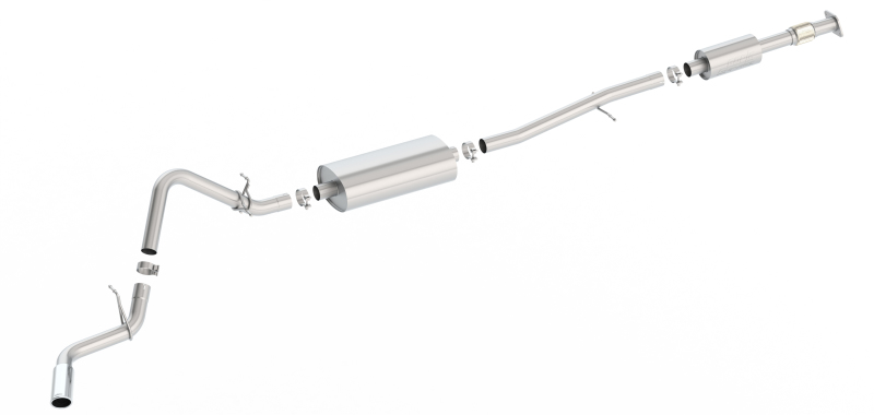 Factory Single Side Exit vehicles ONLY. The 140800 Cat - Back(tm) system will give your 2.7L Silverado and Sierra the right sound and performance without any of the annoying drone often found in four cylinder applications. The Borla(r) S - Type Cat - Back(tm) system is tuned for flow and sound on the turbo four cylinder engine of the GM 1500 trucks. This system features a 4 bright chrome on T - 304 stainless steel tip. A black chrome on T - 304 stainless steel tip is also available. Add Adapter 60708 For Crew Cab with Standard Bed (6' 7) 157 Wheelbase vehicles. Ultra - smooth mandrel bends ensure maximum flow power, and precision computer numerical control (CNC) manufacturing ensures an accurate fit. The system is constructed using premium, high quality T - 304 stainless steel which is superior to 400 series and is backed by the Borla(r) Million Mile Warranty.