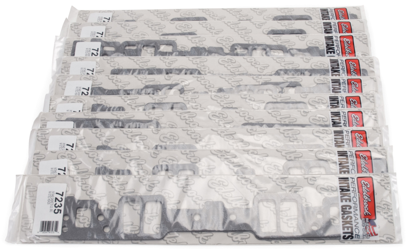 Edelbrock part 72358 Bulk Pack Intake Gaskets for E - Tec 170 Small - Block Chevy allow for optimum flow and performance. Any gasket can create a seal, but a good gasket can do it with less clamping force, and for a longer period of time. The new MP - 2N Micropore technology does not use solvents making our gaskets environmentally friendly. Impervious to most chemicals, this synthetic fiber composite provides a high recovery under load. This means that when compressed, the gasket will conform to any imperfections on the sealing surface even using lower flange pressures. A nitrile bead around each port opening makes the seal even better.