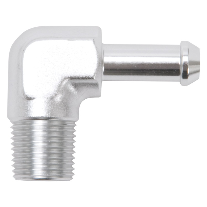 Edelbrock part 8168 heater hose end is designed to hold up to any plumbing task you have. This heater hose end is made from high quality aluminum to ensure they won't rust or corrode. Features 90 deg. end with 38 NPT and 38 Barb, clear anodized finish.