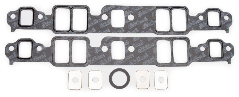 Edelbrock part 7201 Intake Gaskets for 1958 - 1986 Small - Block Chevy allow for optimum flow and performance. Any gasket can create a seal, but a good gasket can do it with less clamping force, and for a longer period of time. The new MP - 2N Micropore technology does not use solvents making our gaskets environmentally friendly. Impervious to most chemicals, this synthetic fiber composite provides a high recovery under load. This means that when compressed, the gasket will conform to any imperfections on the sealing surface even using lower flange pressures. A nitrile bead around each port opening makes the seal even better.
