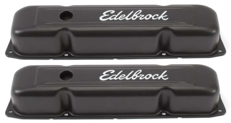 The Edelbrock 4493 Signature Series Valve Covers are designed for Chrysler 361 - 383 - 400 - 413 - 426 - 440 V8 '58 - 79 applications. Engineered for function and styled for great looks, Signature Series valve covers have stock - style breather baffles that prevent oil passage to the PCV valve. These quality valve covers accept all emissions equipment, including PCV valve holes. Rubber grommets for the breather and PCV valve holes are included. Matching breathers sold separately.