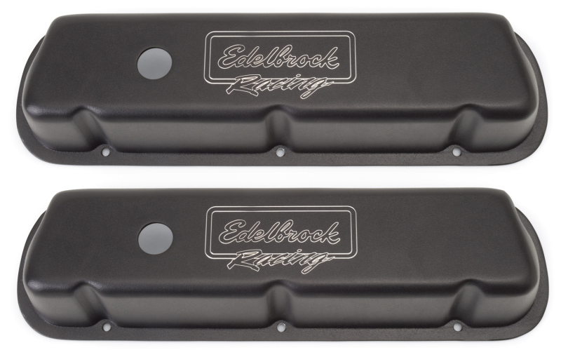 The Edelbrock 41253 Victor Series Valve Covers are designed for Ford 289302351W (except Boss) applications. Our Victor Series valve covers have a finely textured black powder coated finish for a pleasing and unique appearance. This is the same finish you'll find on our top - of - the - line EdelbrockMusi 555 Crate Engine. These valve covers are manufactured from die - cast aluminum and machined with 1 - 14 breather hole. Overall height is measured from base to top at the highest point.