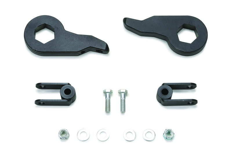 Fabtech Leveling Kits provide a small amount of lift for the front of the vehicle. This will typically help to level the stance of the vehicle's ride height front to rear as compared to the nose down appearance from the factory. With the added ride height it allows for the installation of larger tires and wheels for a more aggressive look. The installation of the kit is typically very simple and can be done with basic hand tools. There is no modification of the vehicle required for installation and can be returned back to stock if needed. All Fabtech Leveling Kits have undergone extensive engineering to properly function without placing the ball joints and tie rods into bind. This is an important feature as some taller kits on the market create bind and can result in failure of those parts over time. Fabtech offers an exclusive Trade Up program on all their Leveling Kits. If you ever want to step up to a complete 4'' or 6'' Fabtech'suspension system after you buy a Leveling Kit, you can trade in the previously purchased kit towards the price of a new Fabtech'system. Please see program details. All Fabtech Leveling Kits come with a free 5 year 60,000 mile Powertrain warranty. Please see program details. This system includes forged Torsion Keys and front shock extension mounts.