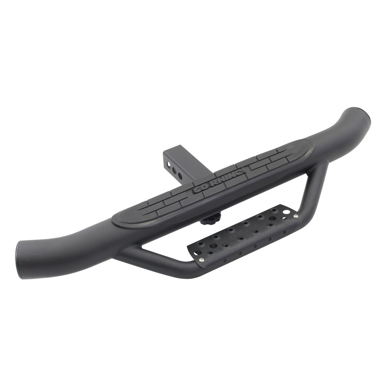 Provides easy rear step access to the bed or back of a truck, Jeep or SUV. This hitch step has the same great aggressive styling of our popular Dominator side steps with a dual step design and foot pads that provide sure footing. hIitch Steps come with a Limited Lifetime warranty on materials and construction and a 5 year warranty on the Textured Black Finish.
