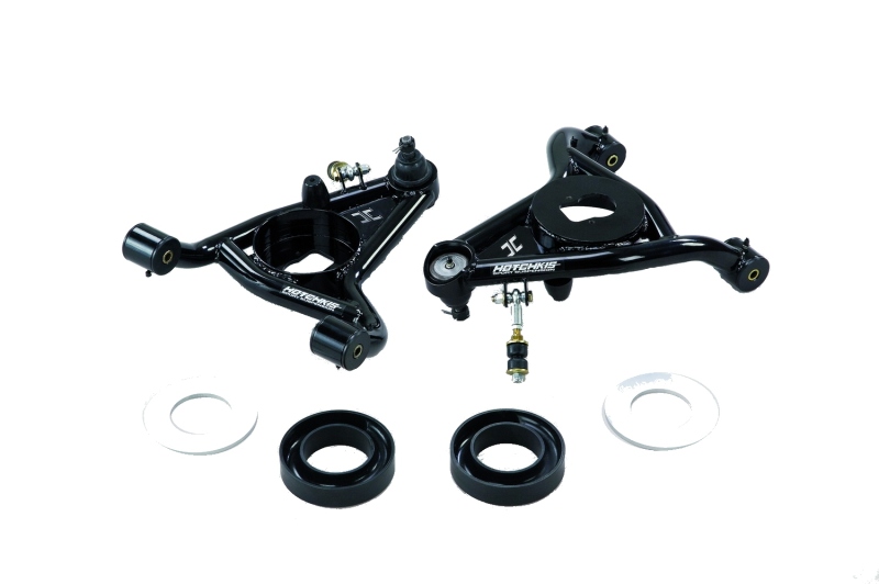 Install the Hotchkis Sport Suspension geometry corrected Tubular Lower A - Arms on your 70 - 81 Camaro or Firebird and gain vastly increased handling and control. These TIG - welded bolt - on have re positioned ball joints for increased caster and improved camber curve resulting in improved stability and traction. Adjustable shims offer ride height adjustment for ultimate performance and a great look regardless of engine and transmission combinations. Smooth operating Delrin bushings allow the arms to move through their travel easily. Finished in gloss black powder coat the arms are ready to install and are complete with ball joints bump stops ride height shims polyurethane coil spring locators and Delrin bushings. Exceptional handling performance when combined with the Hotchkis Sport suspension geometry corrected Tubular Upper A - Arms. New Lower Prices Features Geometry corrected design. Built in - 0.6 deg of Camber 2 deg of Caster 100 TIG - welded 1.5 in. tubular steel construction. CNC machined inset spring cup. Precision aluminum ride height adjustment shims and polyurethane coil spring isolators. Easy to lubricate Delrin bushings. Lower ball joint installed. Laser cut Hotchkis logo Gloss black powder coat finish Made In USA Benefits CAD designed and analyzed by FEA software for ultimate strength and efficiency. Increased structural rigidity due to CNC machined inset spring cup. Aluminum shims allow for .25 in. to .50 in. ride height adjustment. Additional shims available separately. Delrin bushings allow smooth operation with minimal deflection through travel range. Achievable specs when using 1106 upper control arm and 1108 lower control arm. MAX Caster with Uppers and Lowers 9 deg MAX Camber with Uppers and Lowers - 3.5 deg