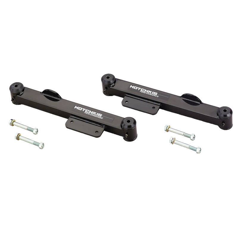 Hotchkis Sport Suspension 1304 1979 - 1998 Mustang Lower Trailing Arms. Hotchkis Performance lower trailing arms for your 79 - 98 Mustang improve traction reduce wheel hop and improve handling and stability. Designed as direct replacements for weak stock trailing arms Hotchkis trailing arms feature TIG - welded construction from one piece of parent material quiet operating greasable polyurethane bushings machined spring perches sway bar mounts and a powder coated finish. Grade 8 hardware included. Black Powder coat. Specs Length 17.75 in.