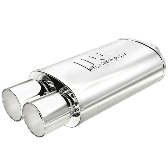 Inlet / Outlet Size: 2.25in./3.5in. Body Shape: 5in.x8in. Oval Core Size: Dual 2in. Body Length: 14in.