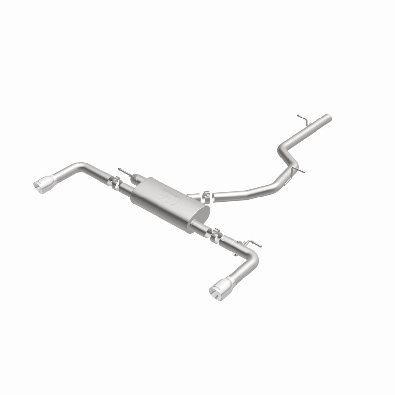 The MagnaFlow 2015 - 2020 Audi A3 Quattro Touring Series Cat - Back Performance Exhaust System 15352 is the perfect partner for your 2.0L 2015 - 2020 Audi A3 Quattro to take on a grand tour or a weekend cruise thanks to the powerful, resonant exhaust note and dyno - proven performance it brings to the table. This durable, corrosion resistant stainless steel exhaust kit is engineered to conquer the miles with ease while enhancing your driving experience with Moderate exterior and Mild interior sound levels generated through its fast - flowing, mandrel bent 2.5in. main piping and 1 Straight - Through muffler that terminate in a Dual Split Rear exit with 3.5in. Polished Welded - On Double Wall Angle Cut Folded Edge tips. 15352 features a cat - back layout design to replace your import's stock exhaust components from the catalytic converter on back. This Audi A3 Quattro exhaust system is compatible with 2015 - 2020 engines. The use of extensive 3D scans made during the development process has resulted in an easy - to - install, direct - fit design that fits your Audi A3 Quattro like a glove. 15352 is produced using CNC precision robotic manufacturing techniques and is backed by MagnaFlow's limited lifetime construction warranty.