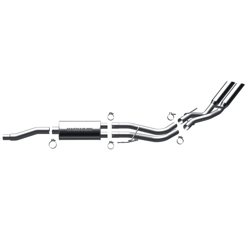 The MagnaFlow Ford F - 150 Street Series 16993 brings out the personality of your 5.4L 2010 - 2010 Ford F - 150 with our signature resonant, powerful engine tone and dyno - proven performance. Thanks to its fast - flowing, mandrel bent 3in. main piping and 1 Straight - Through mufflers ending in a Dual Same Side Behind Passenger Rear Tire exit with 3.5in. Polished Welded - Double Wall - Angle Cut - Folded Edge tips, this Ford F - 150 exhaust kit has the performance chops to match its sporty sound and appearance. Upgrade your ride to the next level with an exhaust that has the pipes to put other Ford F - 150s to shame. With this system your vehicle will be producing Agressive exterior and Moderate interior sound levels while leaving other cars and trucks feeling envious at every stoplight. Exhaust kit 16993 features a cat - back layout that replaces your rides stock exhaust components from near the catalytic converter on back. Extensive 3D scanning during development has resulted in a direct - fit design that you can easily install yourself. 16993 is produced using CNC precision robotic manufacturing techniques and is backed by MagnaFlows 1 - year limited finish warranty and limited lifetime construction warranty.