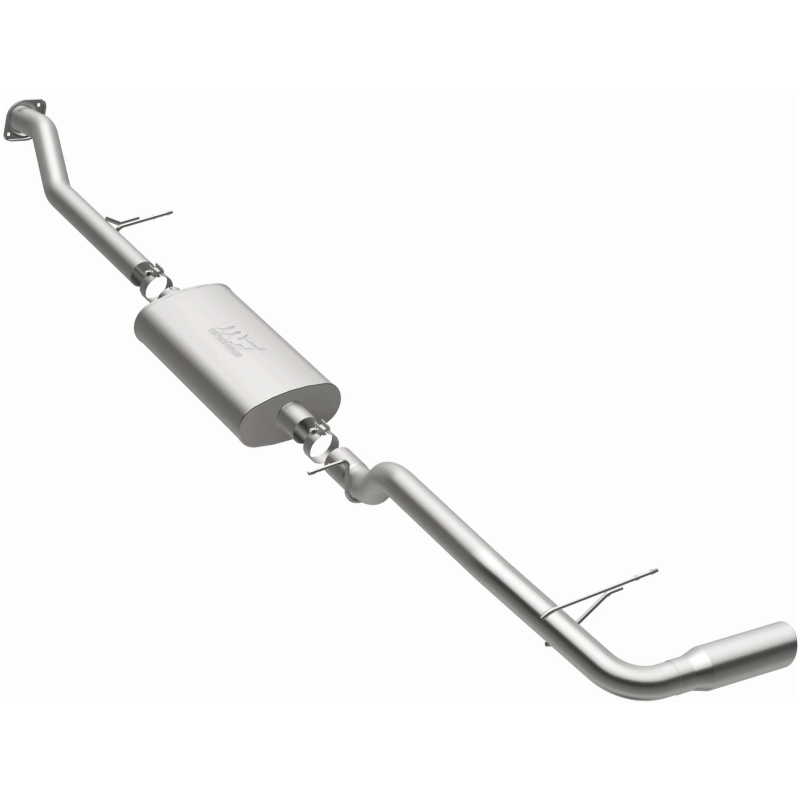The MagnaFlow Street Series Cat - Back Performance Exhaust System 15665 brings out the personality of your SUV with our signature resonant, powerful engine tone and dyno - proven performance. Thanks to its fast - flowing, mandrel bent 3in. main piping and 1 Straight - Through mufflers ending in a Single Passenger Side Rear exit with 4in. Polished Welded - On Single Wall Angle Cut Rolled Edge tips, this SUV exhaust kit has the performance chops to match its sporty sound and appearance. Upgrade your ride to the next level with an exhaust that has the pipes to put other SUV's to shame. With this system your vehicle will be producing Moderate exterior and Mild interior sound levels while leaving other cars and trucks feeling envious at every stoplight. Exhaust kit 15665 features a cat - back layout that replaces your ride's stock exhaust components from near the catalytic converter on back. Extensive 3D scanning during development has resulted in a direct - fit design that you can easily install yourself. 15665 is produced using CNC precision robotic manufacturing techniques and is backed by MagnaFlow's 1 - year limited finish warranty and limited lifetime construction warranty.