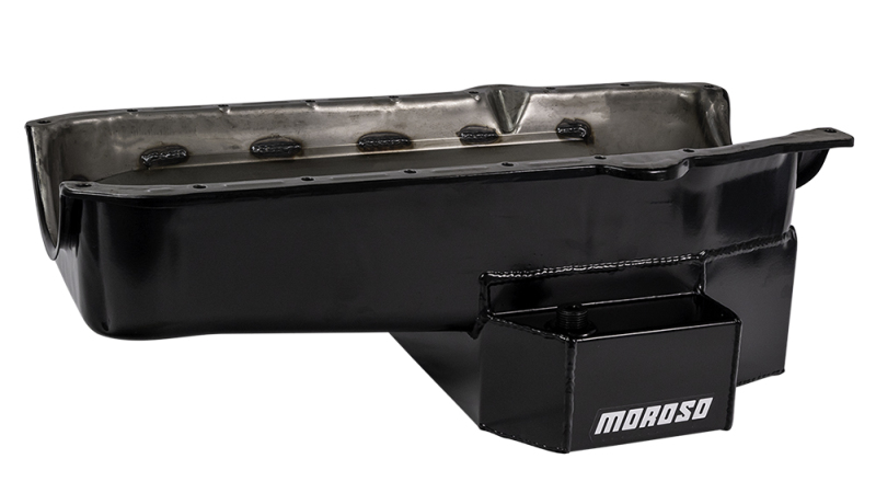 Moroso 86 - Up Chevrolet Small Block (w1 Pc Seal) Road Race Wet Sump 7qt 7.5in Steel Oil Pan - Black