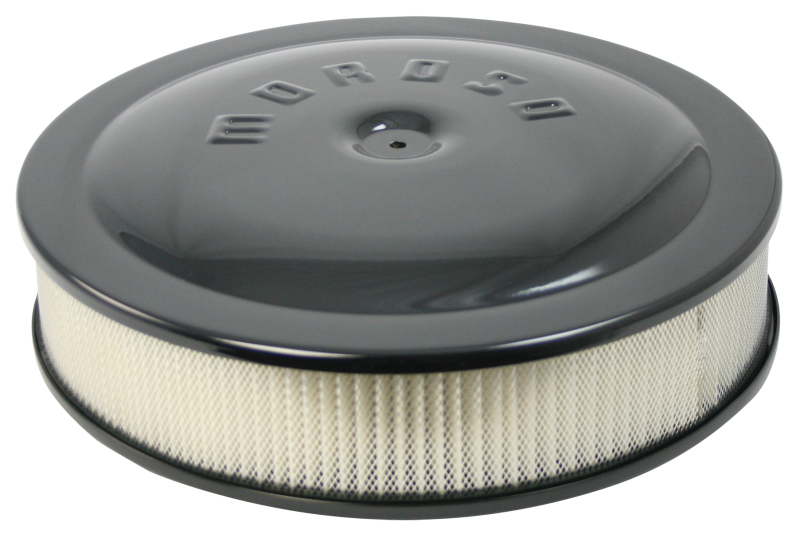 Moroso Racing Air Cleaner - 14in x 3in Filter - Raised Bottom - Aluminum - Black Powder Coat