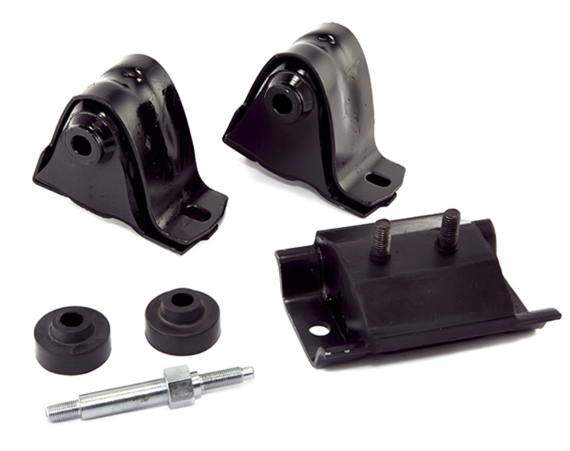 Omix proudly offers all the parts you need to keep your WillysJeep running like new with quality standards that always meet or exceed those of the factory part. This replacement engine mounting kit fits 87 - 95 Wrangler YJ models equipped with 4.0 and 4.2 liter engines. Kit includes a pair of engine mounts, a transmission mount, torque stud and bushings. Replaces OE 52019201K