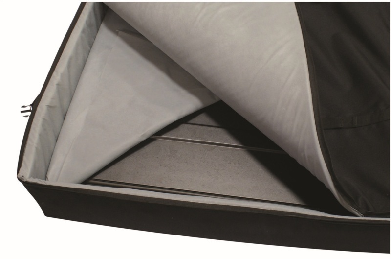 Freedom top panel storage bag comes in a heavy weight canvas. Soft inner liner to pamper top panels, dual compartment bag with zippered closure, nylon web straps with hooks for wall storage and durable grab handle for carrying transporting. Stores behind rear seat or under sport rack.