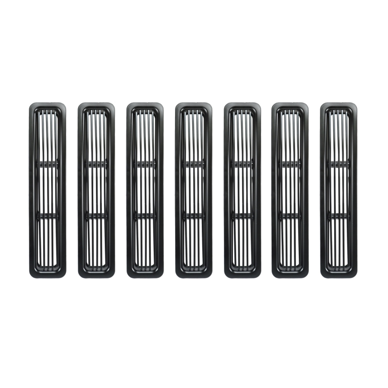 Durable UV treated inserts enhance the front of your Jeep. These inserts add great styling and a unique appearance. All Rugged Ridge inserts easily install without drilling or tools. Just click them in and go
