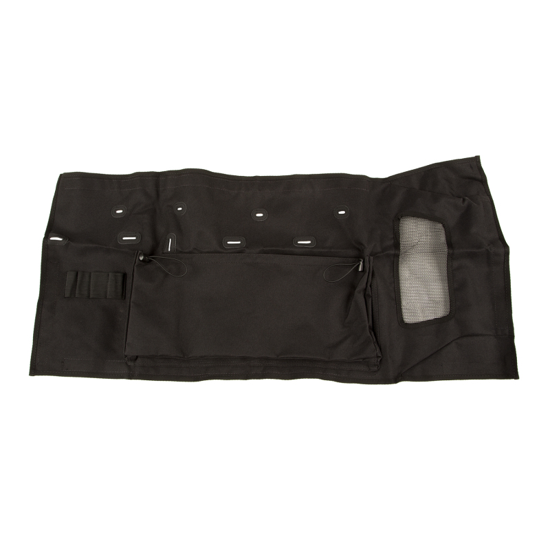 A versatile Jeep(R) deserves versatile accessories and that's the reason we designed the Rugged Ridge C3 line of cargo area protection products. The C3 Tailgate Cover is the perfect complement to the Rear Cargo Cover or as a simple and effective way to make the most of your Wrangler JK's tailgate. Constructed from a durable weather - resistant 900 denier weave PVC material that is UV protected, the C3 Tailgate Cover protects the interior from scratches and scuffs while adding valuable storage space for tools, recovery gear or those crucial fluids that always tumble around in the back. Each C3 Tailgate Cover mounts securely with the included hook and loop fasteners so the install is quick and easy and allows for simple removal. An integrated mesh screen aids with air flow through the cover to the factory vent grille.