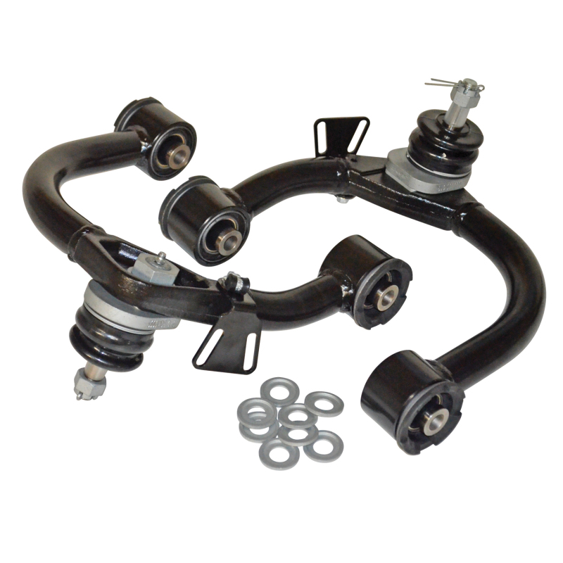 Improve droop travel, drivability and tire wear as well as adjusting tire position in your wheel well with SPC's adjustable front upper control arms for the Toyota Series 100 Landcruiser and Lexus LX470. Featuring our long life maintainable ball joint and SpecRide bushings, this arm is designed to correct alignment angles while maintaining factory ride quality. SPC's integrated tubular and cast steel design provides the strength and durability needed for the most demanding environments. These remove andreplace arms are available in pairs for lifted and off - road applications. Get more droop travel SPC's arm has improved clearance to get around the spring bucket when the arm droops, eliminating arm to frame contact on lifted trucks. THe maintainable ball joint has an oversized ball and allows more than 80deg of articulation to ensure it never binds. SpecRide bushings have free pivot to eliminate any chance of bushing failure seen on many high travel suspensions. Get your drivability and tracking back When you lift your truck you affect caster and camber. SPC's arms have 1deg of caster built into them. Using its patented ball joint design the arm will get you - 1deg to 3deg of caster and - 2deg of camber. Get your tire where you wantit in the wheel well Use adjustment in the control arm and on the OE lower cams to maximize alignment angles and move oversized tires forward in the wheel well to minimize or avoid fender trimming. Do you need heavy duty rear lower control arms Check out SPC pn 25955, which are more than 2x stronger than the OE arms. On the adjustable ball joint SPC uses hex chromate free finish and offers a 700hr salt spray test for the best corrosion protection available. California Residents WARNING