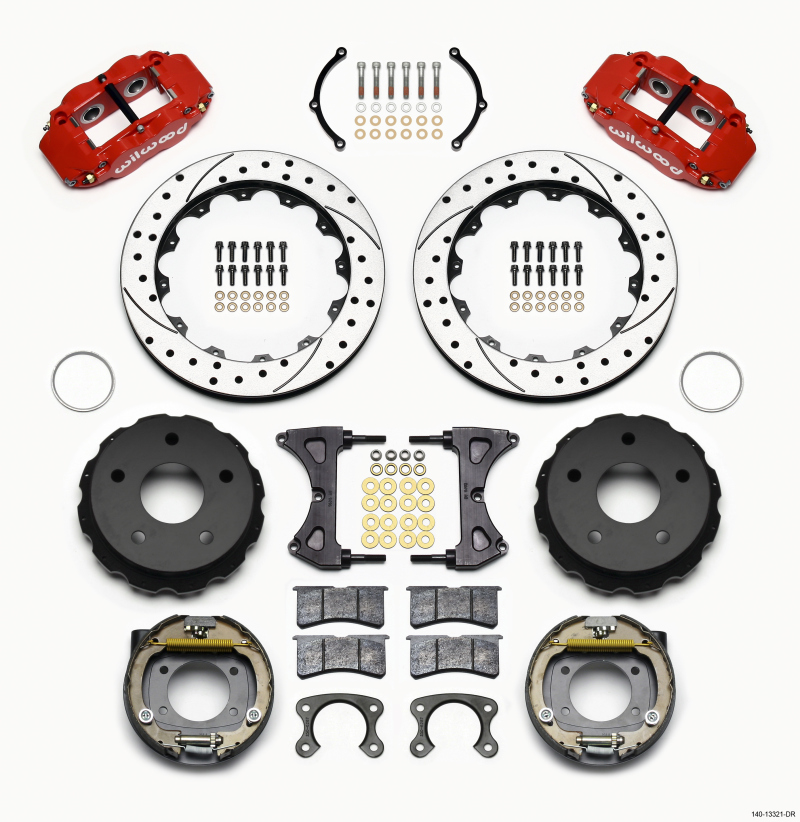 These versions of Forged Narrow Superlite 4R rear disc kits provide the ultimate Big Brake solution for Bronco 65 - 75 rear axles with Small Ford flange and bearing. (normally OE 10 inch diameter brakes and 2700 or 2900 GVW.) Each includes a high efficiency drum style parking brake assembly. FNSL4R four piston calipers, 13 or 14 two - piece rotors, and high performance BP - 10 compound pads provide optimized and balanced braking to compliment front big brake upgrades available for Bronco platform. The neatly hidden internal shoe system provides a clean installation with superior static holding power for parking. Optional caliper finishes and rotor designs allow builders to personalize the style and performance for every application.