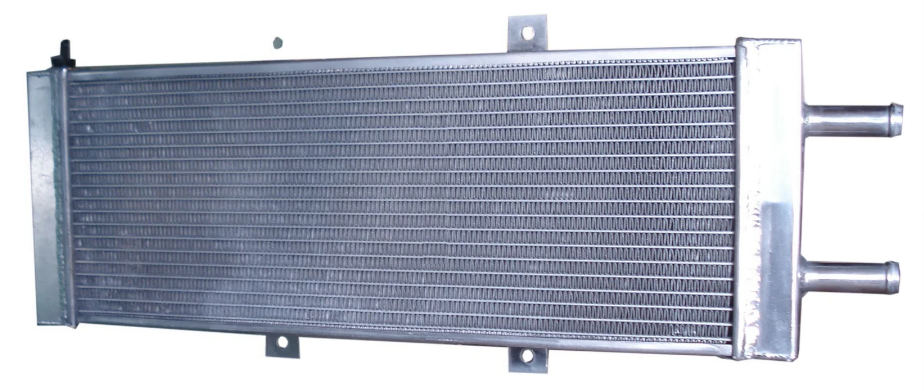 This is a water to air intercooler that is really efficient. Often used for cars where there is little space in the front.