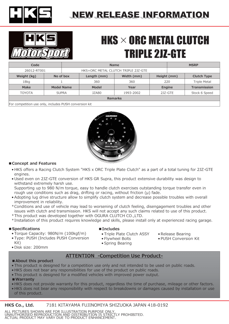 HKS ORC METAL CLUTCH TRIPLE 2JZ - GTE