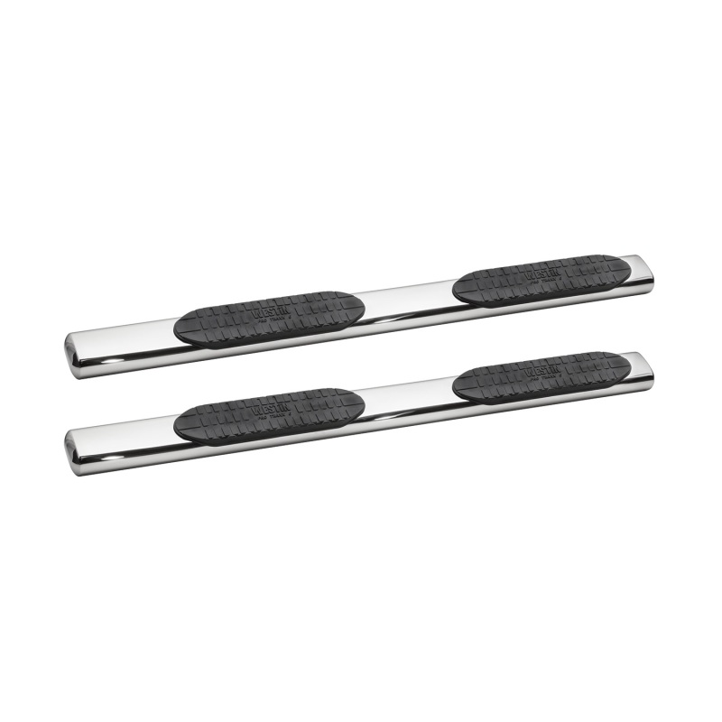 6 Pro Traxx Oval Tube Step Bars by Westin. With Rocker Panel Mount. Add style and functionality to your truck with these easily installed oval tube step bars. The powder coated black or polished 304 stainless steel finish and angled ends with fully welded caps will enhance the appearance of any truck while the textured logo step pads give you sure footing to ease cab access. The included mount kit includes everything required for installation including zinc plated stainless steel hardware and detailed instructions.